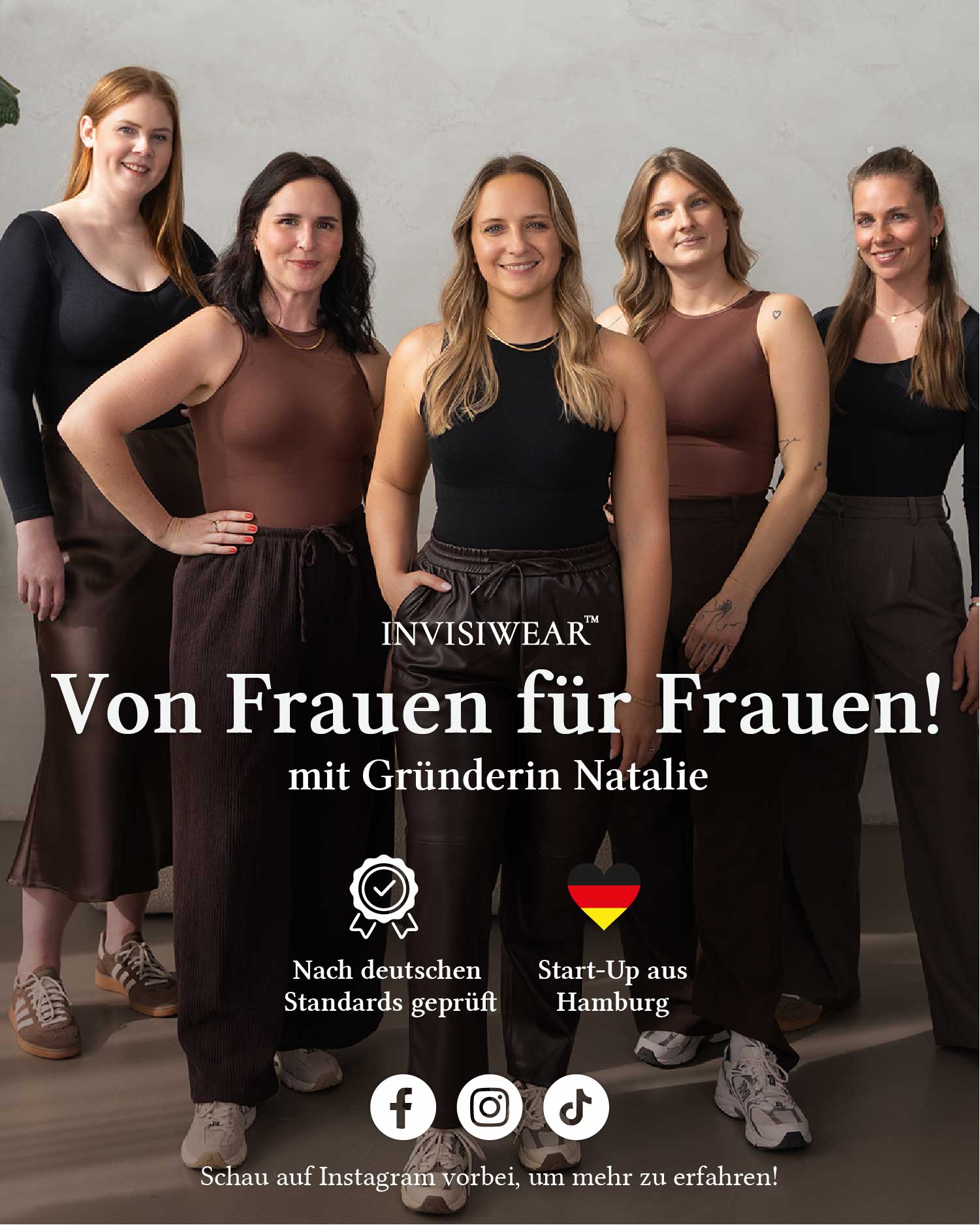 Started in Hamburg with female founder Natalie, InvisiWear has become the #1 brand for comfortable, functional clothing – with lots of attention to detail and feedback from our loyal customers, we constantly evolve our products. We’re excited that you’re a part of it 🤍